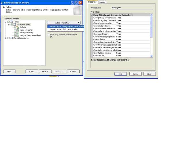 After that, manage the replication articles, data, and database objects by choosing the objects to be replicated.